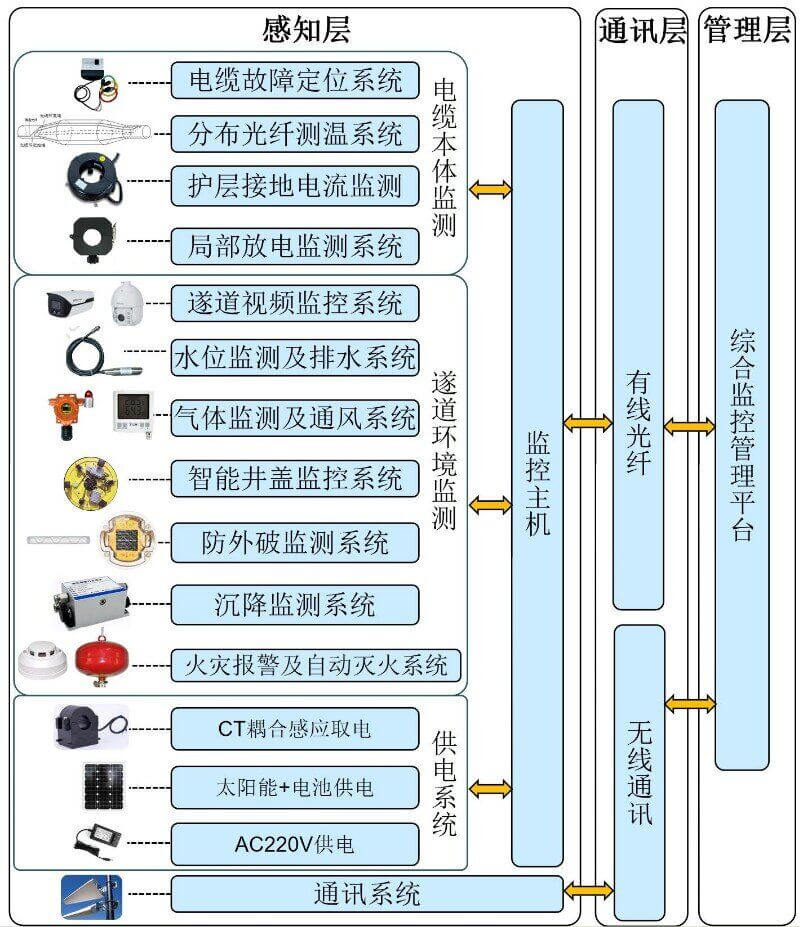 電纜隧道在線監(jiān)控系統(tǒng)通過(guò)邊端設(shè)備,采用以太網(wǎng)接口MQTT協(xié)議接入物聯(lián)管理平臺(tái),對(duì)整個(gè)隧道監(jiān)控與管理。結(jié)合大數(shù)據(jù)技術(shù)和智能網(wǎng)絡(luò)算法??煞治龊屠镁址?,護(hù)層,測(cè)溫等多種數(shù)據(jù)源,運(yùn)用數(shù)據(jù)趨勢(shì)分析,人工智能學(xué)習(xí),神經(jīng)網(wǎng)絡(luò)診斷等高新技術(shù)手段,對(duì)電纜的運(yùn)行狀態(tài)進(jìn)行診斷分析,并輸出電纜狀態(tài)評(píng)價(jià)結(jié)果,為電力巡檢工作提供技術(shù)輔助和數(shù)據(jù)支撐,實(shí)現(xiàn)高端智能電網(wǎng)全面監(jiān)測(cè)。