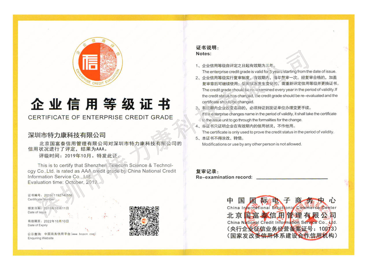 我司獲得企業(yè)信用認(rèn)證證書(shū)