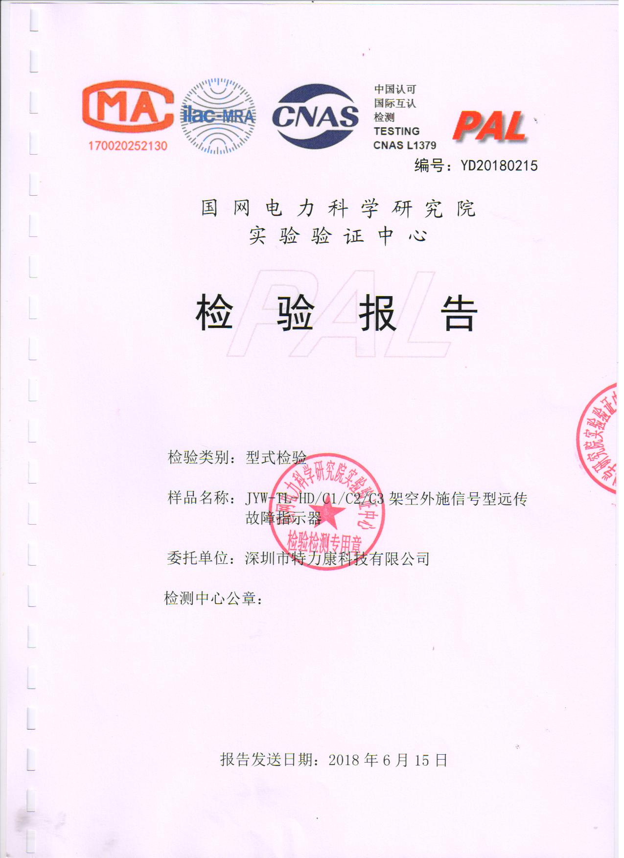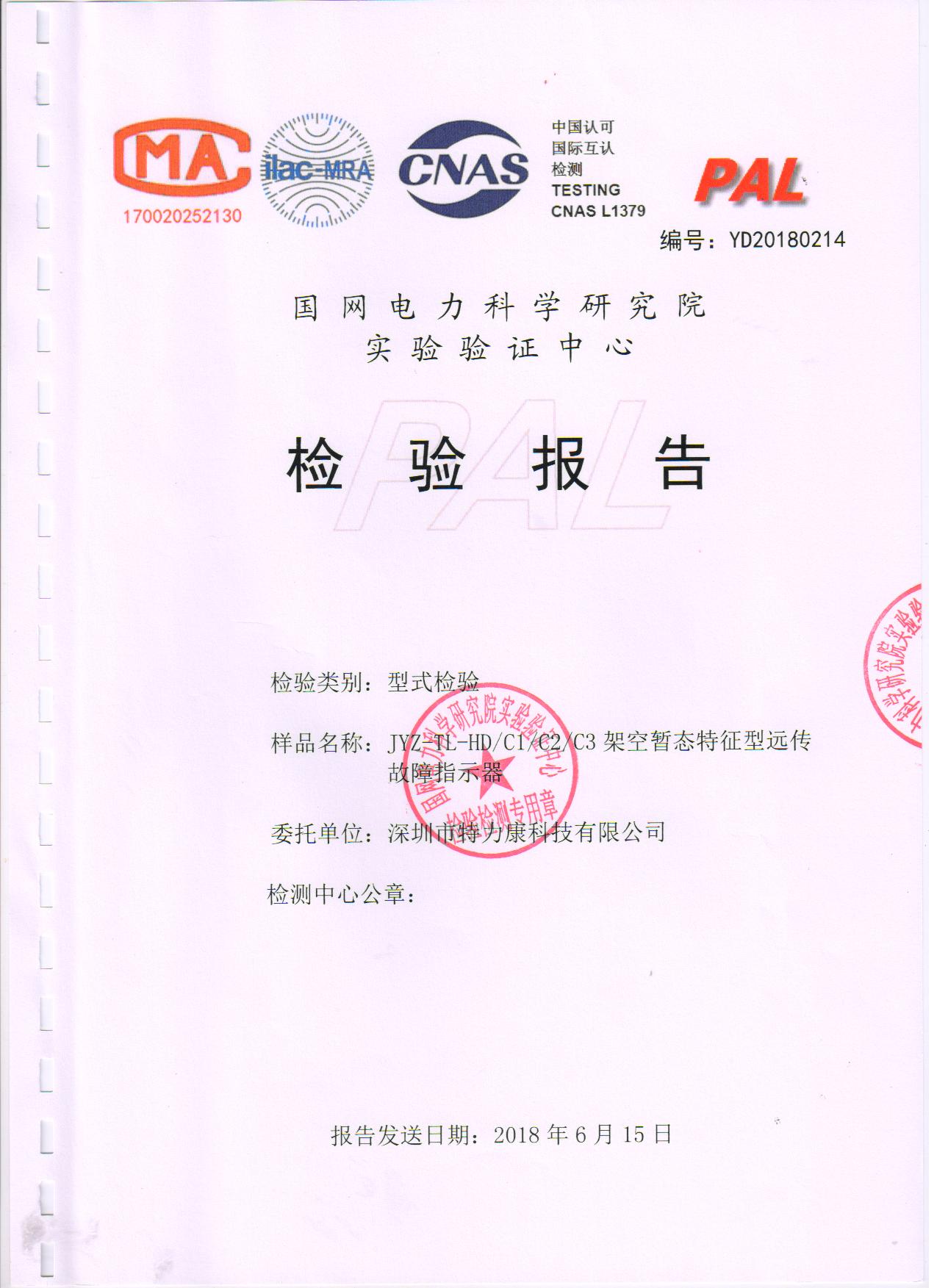 我司專注輸電線路在線監(jiān)測十二年,在智能電網(wǎng)監(jiān)測領域已有了不凡的地位。然而,為了更好的為電力智能化管理做出貢獻,我司大力組建研發(fā)團隊致力于配網(wǎng)故障監(jiān)測產(chǎn)品開發(fā),經(jīng)多年研發(fā)與掛網(wǎng)測試,于2018年1月20日,經(jīng)邀請,攜帶我司研發(fā)的架空暫態(tài)特征型、架空信號遠傳型故障指示器,前往國家電網(wǎng)電力科學研究院進行抽檢試驗及測試。在長達將近5個月的各項性能測試后,我司架空暫態(tài)特征型、架空信號遠傳型故障指示器的測試結果均達到合格。因此,于2018年6月15日國網(wǎng)電力科學研究院為我司發(fā)放了相關檢測報告證明文件(型式檢測報告)。