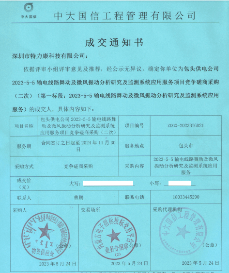 特力康中標(biāo)國網(wǎng)黑龍江送變電工程公司的2024年度第18次物資類競爭性談判采購項(xiàng)目——慶陽驅(qū)鳥器物資框 特力康中標(biāo)國網(wǎng)甘肅省電力公司省管產(chǎn)業(yè)單位2024年第五次物資競爭性談判授權(quán)采購項(xiàng)目 中標(biāo)喜訊:深圳市特力康科技有限公司成功入圍許繼集團(tuán)綜合能源公司輸電線路視頻在線監(jiān)測裝置模塊集采項(xiàng)目 中標(biāo)喜訊:特力康成功中標(biāo)國網(wǎng)重慶市電力公司渝中一片區(qū)項(xiàng)目 特力康成功中標(biāo)國網(wǎng)天津市電力公司2024年第二次?物?資招標(biāo)項(xiàng)目 特力康中標(biāo)國網(wǎng)安徽省電力有限公司蕪湖供電公司2024年3月非物質(zhì)采購項(xiàng)目 雙軸感知護(hù)塔穩(wěn):山西電力用特力康裝置破解采空區(qū)傾斜難題 江西電力裝上 “智能防鳥衛(wèi)士”—— 特力康綜合激光驅(qū)鳥器破解湖區(qū)變電站鳥害難題 破解巡檢難題:貴州電力用特力康 AI 微拍裝置,精準(zhǔn)捕捉線路隱性隱患 精準(zhǔn)捕捉 “微氣象”:浙江電力用特力康預(yù)警系統(tǒng)筑牢電網(wǎng)氣候防線 守護(hù) “電力咽喉”:湖南電力投用百套特力康三跨 4G 監(jiān)控球,筑牢安全防線 貴州電力裝特力康電網(wǎng)架空線路覆冰監(jiān)測系統(tǒng),精準(zhǔn)防冰保電網(wǎng)過冬? 百套落地山西電網(wǎng)!特力康輕量化輸電架空線路監(jiān)拍裝置,筑牢輸電安全網(wǎng) 破解采空區(qū)隱患:山西電力裝特力康通用型監(jiān)測裝置,守鐵塔穩(wěn)運(yùn)行 寧夏配電線路安裝了我司防外破電子化智能警示牌