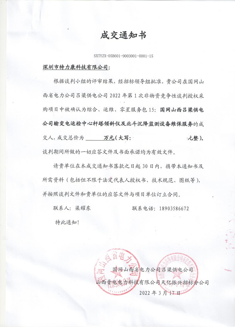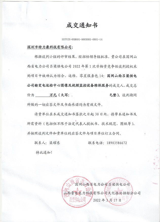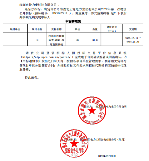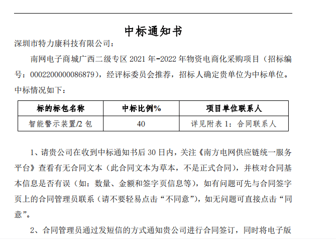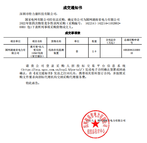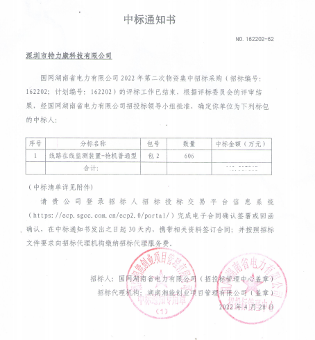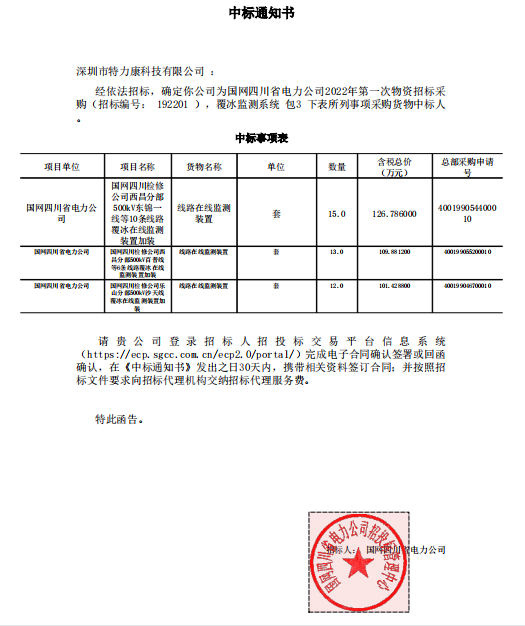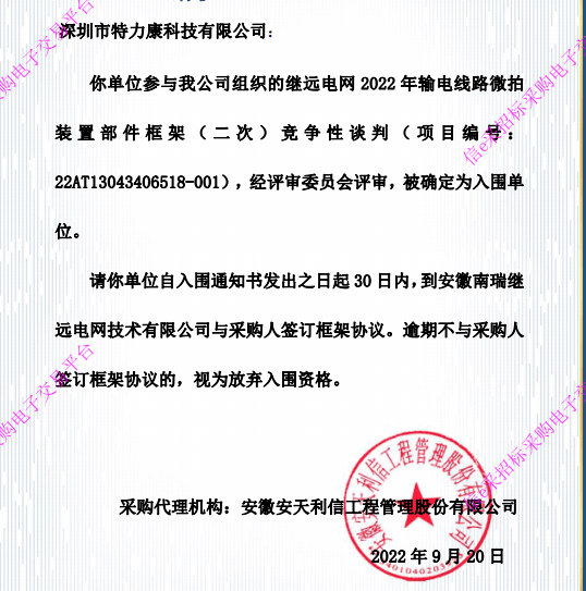 特力康中標(biāo)國網(wǎng)黑龍江送變電工程公司的2024年度第18次物資類競爭性談判采購項(xiàng)目——慶陽驅(qū)鳥器物資框 特力康中標(biāo)國網(wǎng)甘肅省電力公司省管產(chǎn)業(yè)單位2024年第五次物資競爭性談判授權(quán)采購項(xiàng)目 中標(biāo)喜訊:深圳市特力康科技有限公司成功入圍許繼集團(tuán)綜合能源公司輸電線路視頻在線監(jiān)測裝置模塊集采項(xiàng)目 中標(biāo)喜訊:特力康成功中標(biāo)國網(wǎng)重慶市電力公司渝中一片區(qū)項(xiàng)目 特力康成功中標(biāo)國網(wǎng)天津市電力公司2024年第二次?物?資招標(biāo)項(xiàng)目 特力康中標(biāo)國網(wǎng)安徽省電力有限公司蕪湖供電公司2024年3月非物質(zhì)采購項(xiàng)目 雙軸感知護(hù)塔穩(wěn):山西電力用特力康裝置破解采空區(qū)傾斜難題 江西電力裝上 “智能防鳥衛(wèi)士”—— 特力康綜合激光驅(qū)鳥器破解湖區(qū)變電站鳥害難題 破解巡檢難題:貴州電力用特力康 AI 微拍裝置,精準(zhǔn)捕捉線路隱性隱患 精準(zhǔn)捕捉 “微氣象”:浙江電力用特力康預(yù)警系統(tǒng)筑牢電網(wǎng)氣候防線 守護(hù) “電力咽喉”:湖南電力投用百套特力康三跨 4G 監(jiān)控球,筑牢安全防線 貴州電力裝特力康電網(wǎng)架空線路覆冰監(jiān)測系統(tǒng),精準(zhǔn)防冰保電網(wǎng)過冬? 百套落地山西電網(wǎng)!特力康輕量化輸電架空線路監(jiān)拍裝置,筑牢輸電安全網(wǎng) 破解采空區(qū)隱患:山西電力裝特力康通用型監(jiān)測裝置,守鐵塔穩(wěn)運(yùn)行 寧夏配電線路安裝了我司防外破電子化智能警示牌