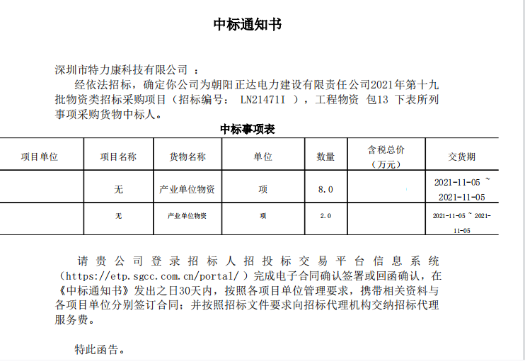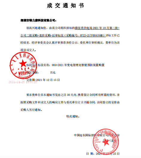 特力康中標(biāo)國(guó)網(wǎng)黑龍江送變電工程公司的2024年度第18次物資類競(jìng)爭(zhēng)性談判采購(gòu)項(xiàng)目——慶陽(yáng)驅(qū)鳥器物資框 特力康中標(biāo)國(guó)網(wǎng)甘肅省電力公司省管產(chǎn)業(yè)單位2024年第五次物資競(jìng)爭(zhēng)性談判授權(quán)采購(gòu)項(xiàng)目 中標(biāo)喜訊:深圳市特力康科技有限公司成功入圍許繼集團(tuán)綜合能源公司輸電線路視頻在線監(jiān)測(cè)裝置模塊集采項(xiàng)目 中標(biāo)喜訊:特力康成功中標(biāo)國(guó)網(wǎng)重慶市電力公司渝中一片區(qū)項(xiàng)目 特力康成功中標(biāo)國(guó)網(wǎng)天津市電力公司2024年第二次?物?資招標(biāo)項(xiàng)目 特力康中標(biāo)國(guó)網(wǎng)安徽省電力有限公司蕪湖供電公司2024年3月非物質(zhì)采購(gòu)項(xiàng)目 雙軸感知護(hù)塔穩(wěn):山西電力用特力康裝置破解采空區(qū)傾斜難題 江西電力裝上 “智能防鳥衛(wèi)士”—— 特力康綜合激光驅(qū)鳥器破解湖區(qū)變電站鳥害難題 破解巡檢難題:貴州電力用特力康 AI 微拍裝置,精準(zhǔn)捕捉線路隱性隱患 精準(zhǔn)捕捉 “微氣象”:浙江電力用特力康預(yù)警系統(tǒng)筑牢電網(wǎng)氣候防線 守護(hù) “電力咽喉”:湖南電力投用百套特力康三跨 4G 監(jiān)控球,筑牢安全防線 貴州電力裝特力康電網(wǎng)架空線路覆冰監(jiān)測(cè)系統(tǒng),精準(zhǔn)防冰保電網(wǎng)過(guò)冬? 百套落地山西電網(wǎng)!特力康輕量化輸電架空線路監(jiān)拍裝置,筑牢輸電安全網(wǎng) 破解采空區(qū)隱患:山西電力裝特力康通用型監(jiān)測(cè)裝置,守鐵塔穩(wěn)運(yùn)行 寧夏配電線路安裝了我司防外破電子化智能警示牌